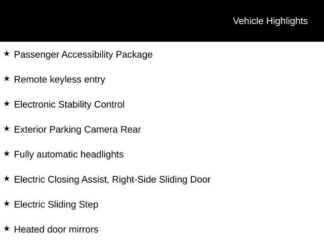 The Passenger Accessibility Package further enhances the versatility of this van, making it an ideal choice for those with accessibility needs. The electric sliding step and electric closing assist on the right-side sliding door provide effortless entry and exit, while the 13-speaker audio system and rear air conditioning keep everyone comfortable.