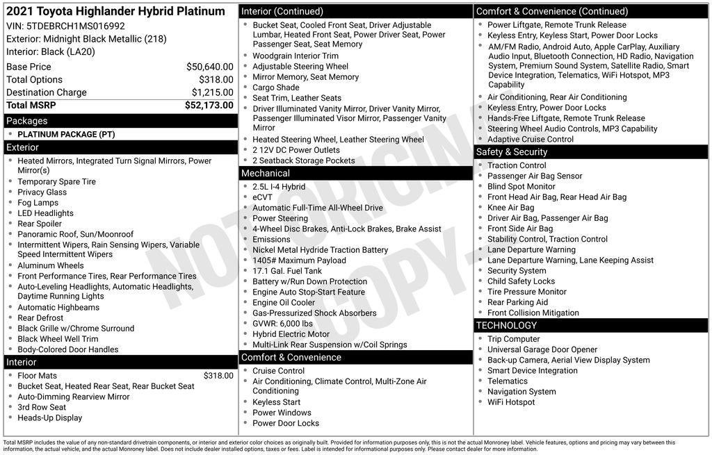 2021 Toyota HIGHLANDER HYBRID Platinum