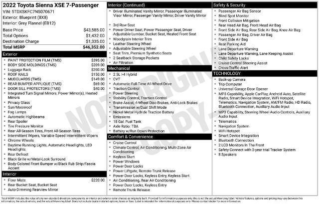 Whether you're shuttling the kids to school, embarking on a weekend getaway, or tackling your daily errands, the 2022 Toyota Sienna XSE 7 Passenger is the perfect companion. Experience the ultimate in versatility, technology, and style - visit our showroom today to take this remarkable minivan for a test drive.