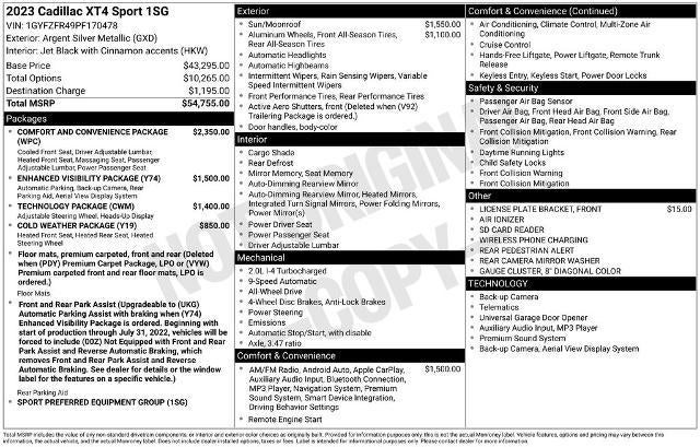 XT4 Sport, AWD, 20" Twin 5-Spoke Alloy Wheels, 8" Diagonal Color Display Driver Info Center, Automatic Emergency Braking, Automatic Parking Assist w/Braking, Automatic temperature control, Bose Centerpoint Surround Sound 13-Speaker System, Brake assist, Cold Weather Package, Comfort & Convenience Package, Dual Panel Glass Sunroof w/Power Tilt/Sliding, Electronic Cruise Control w/Set & Resume Speed, Enhanced Visibility Package, Front & Rear Park Assist, Fully automatic headlights, HD Rear Vision Camera, HD Surround Vision, Heated Driver & Front Passenger Seats, Heated Rear Outboard Seating Positions, Heated Steering Wheel, Memory seat, Power Liftgate, Power Lumbar Massage Driver Seat, Power Lumbar Massage Front Passenger Seat, Preferred Equipment Group 1SG, Radio: Cadillac User Experience w/Embedded Nav, Rain sensing wipers, Rear Camera Mirror, Rear Pedestrian Alert, Reconfigurable Full-Color Head-Up Display, Technology Package, Ventilated Driver & Front Passenger Seats, Wireless Apple CarPlay/Wireless Android Auto. Certified.