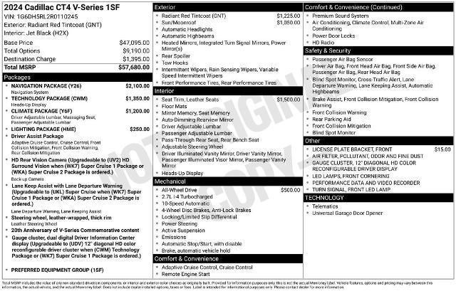 Beyond its dynamic capabilities, the CT4 V-Series is a masterpiece of design, featuring a bold and striking exterior that commands attention. The Radiant Red Tintcoat paint adds a touch of elegance and sophistication, while the distinctive V-Series styling cues, such as the unique front grille and rear spoiler, further enhance its sporty persona.
