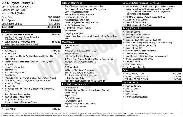Elevate your driving experience with this exceptional 2025 Toyota Camry SE AWD. This meticulously maintained vehicle not only delivers exceptional performance but also offers an array of premium features that will elevate your daily commute and weekend adventures.